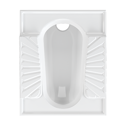 • 1. توالت ایرانی ریم باز (Open Rim / Rimmed): لبه دارای سوراخ است و فضای داخلی آن باز و قابل رؤیت است.