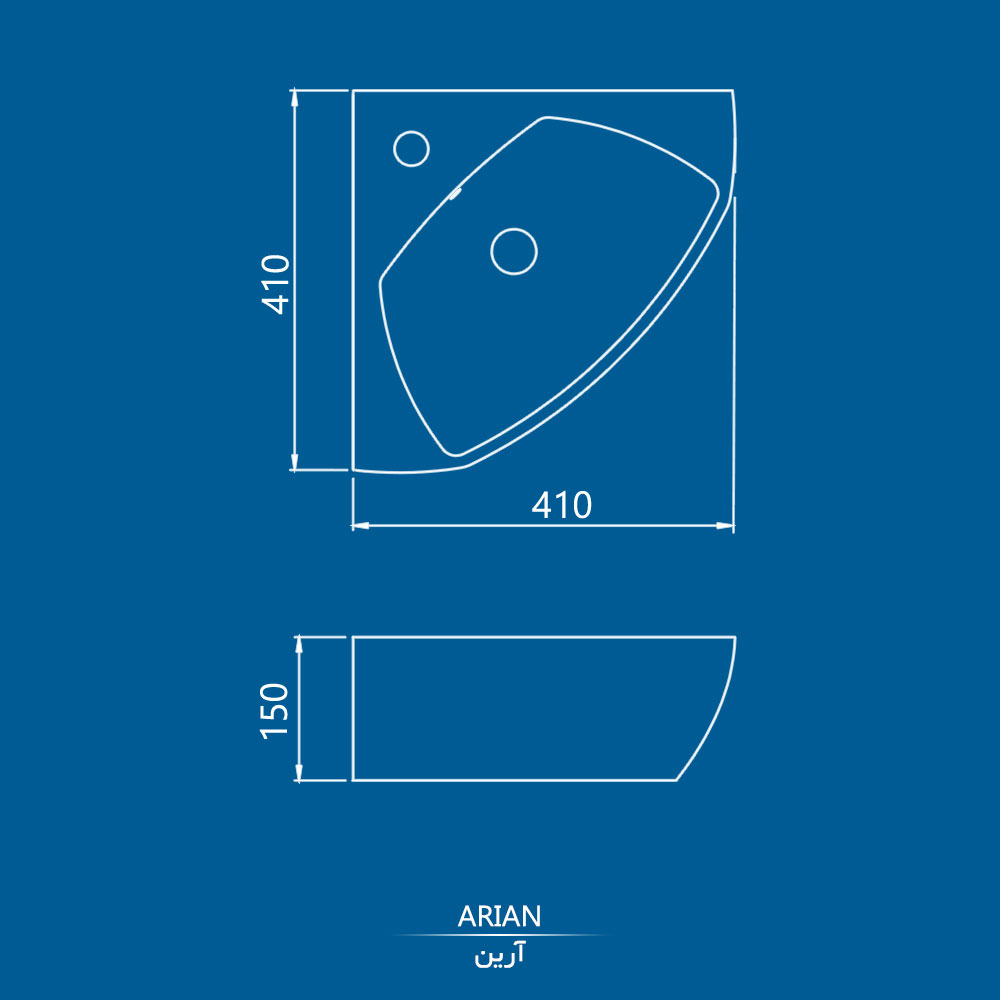 روشویی دیواری چینی کرد مدل گوشه آرین 38