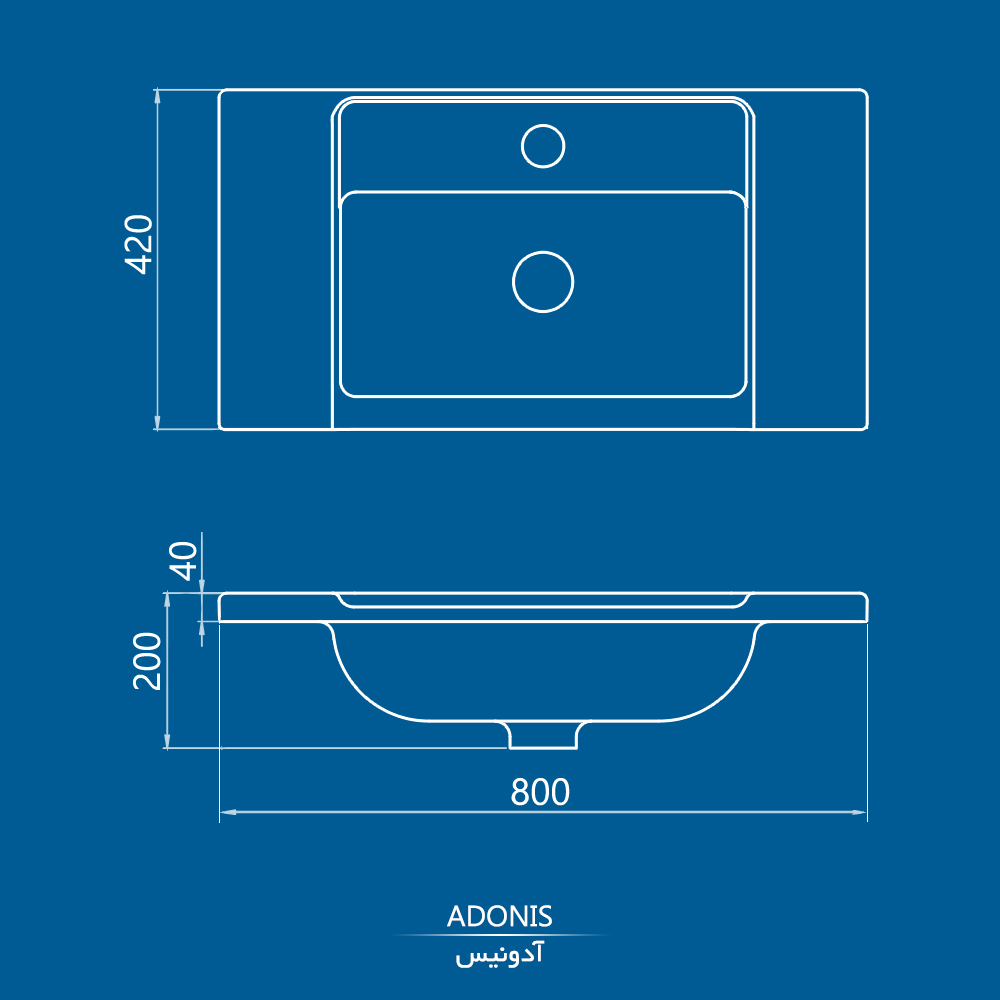 روشویی روکابینتی چینی کرد مدل آدونیس 80